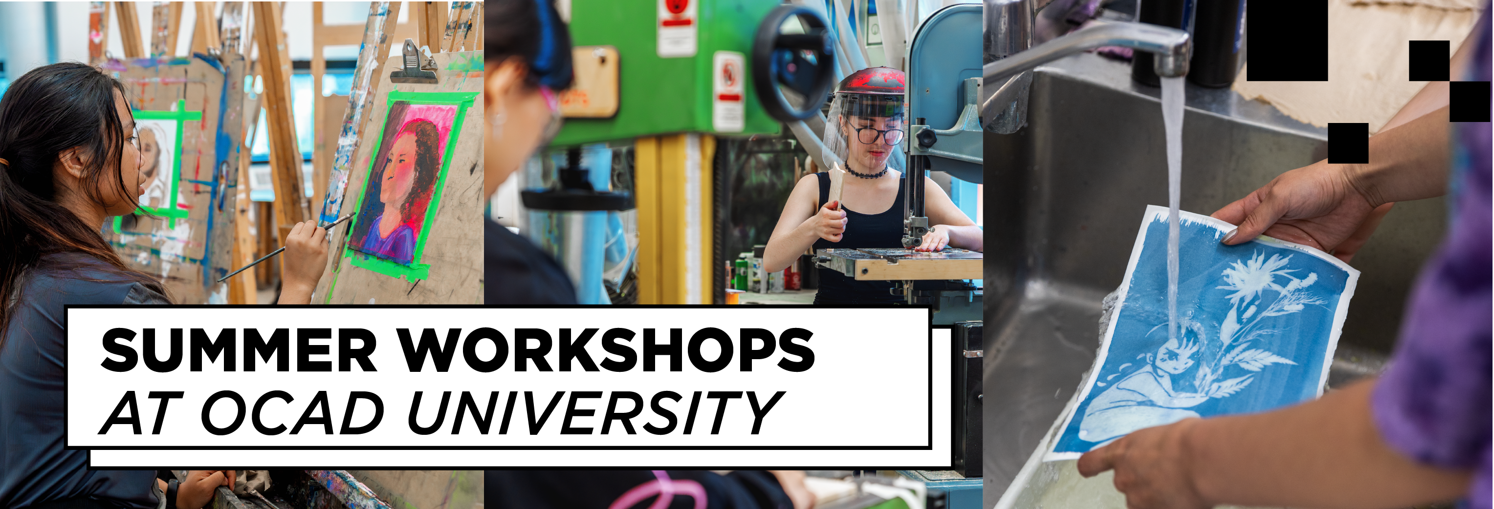 Return to Summer Workshops WebsiteOCAD University’s Summer Workshops are 5-day studio experiences for young creatives ages 15-19 who want to explore different techniques and create new work for their portfolios. In this exciting week, you will work closely with OCAD U faculty that teach in our undergraduate programs, who will facilitate your time on our campus and in our studios to further develop your art and design skills. Each day you will be in a specialized workshop that is tailored to help you expand both your skill and knowledge on contemporary art and design practice, by taking a hands-on, multi-disciplinary approach to the studio experience. These sessions are created to apply to any creative field, and will encourage you to explore and experiment with different tools, techniques, and practices. During the Summer Workshops you will gain new skills across different mediums, materials and techniques including: